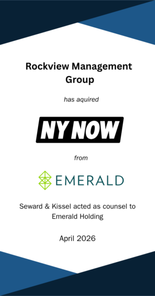 On April 9, Rockview Management Group (RMG), a newly formed entity led by respected industry veterans Dorothy Belshaw, William Lacey and Karen Olson, announced it has acquired NY NOW, the iconic wholesale marketplace serving the gift, home, lifestyle and accessories industries, from Emerald Holding, Inc. Seward & Kissel is pleased to have represented Emerald in connection with this transaction.