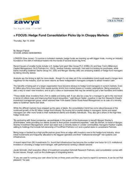 “Hedge Fund Consolidation Picks Up In Choppy Markets.”